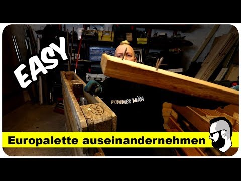 Im dem folgenden Videos kannst Du einige Beispiele sehen, wie man eine Europalette mit dem Brecheisen einfach zerlegen kann. Ob Du die Nägel komplett entfernen möchtest oder nicht, kommt natürlich ganz auf Dein Europaletten Möbel Projekt an. Beim Zerlegen der Paletten gibt es verschiedenen Möglichkeiten.