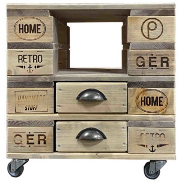 - Der Nachttisch aus Palettenholz wird in vintage-lasiert ausgeliefert, auf Wunsch auch farblos natur