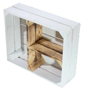 Flache Regalkiste aus Holz – Weiß / geflammter Look