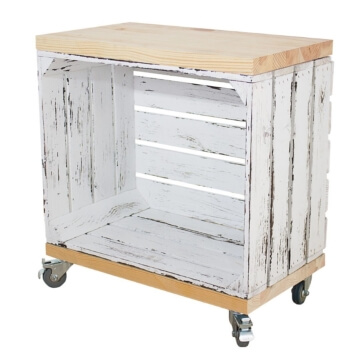 Diese Holzkiste im vintage Look bietet Dir viel Ablagefläche und durch die Bohlenbretter in natur einen tollen Charme. Dank der Rollen lässt sich das Holzkisten Regal problemlos bewegen.