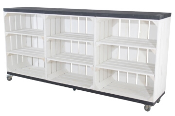 Diese Kommode aus drei weißen, hohen Holzkisten bietet Dir viel Ablagefläche und zudem einen tollen Look, der durch die schwarzen Bohlenbretter abgerundet wird. Dank der Rollen kannst Du die Kommode problemlos bewegen.