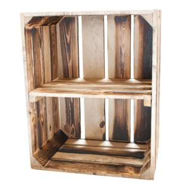Geflammtes Holzkisten Regal mit Querboden
