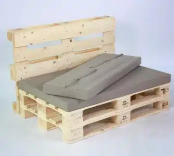 - Set besteht aus: 2x Paletten 120 x 80 x 14,5 cm als Sitzfläche, 1x Palette 120 x 80 x 14,5 cm als Rückenlehne, 2x Verbindungsbolzen, 1x Palettenkissen 120 x 80 x 8 cm & 1x Palettenrückenkissen 120 x 42 x 8 cm
