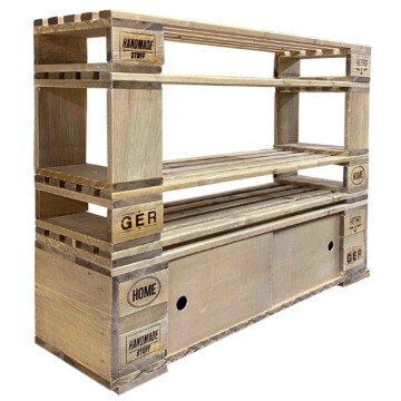 Ein praktisches Regal aus Paletten mit ausreichend Platz für Schuhe. Reinigung ohne viel Aufwand möglich. Den Unterschrank kannst Du auch einzeln in unserem Shop kaufen.