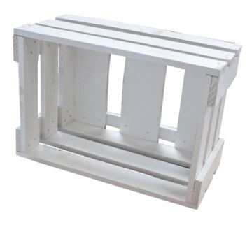 Diese kleine weiße Weinkiste eignet sich hervorragend zur Dekoration oder zur Nutzung als Stauraum.