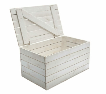 Große weiße Holztruhe – Obstkiste mit Deckel